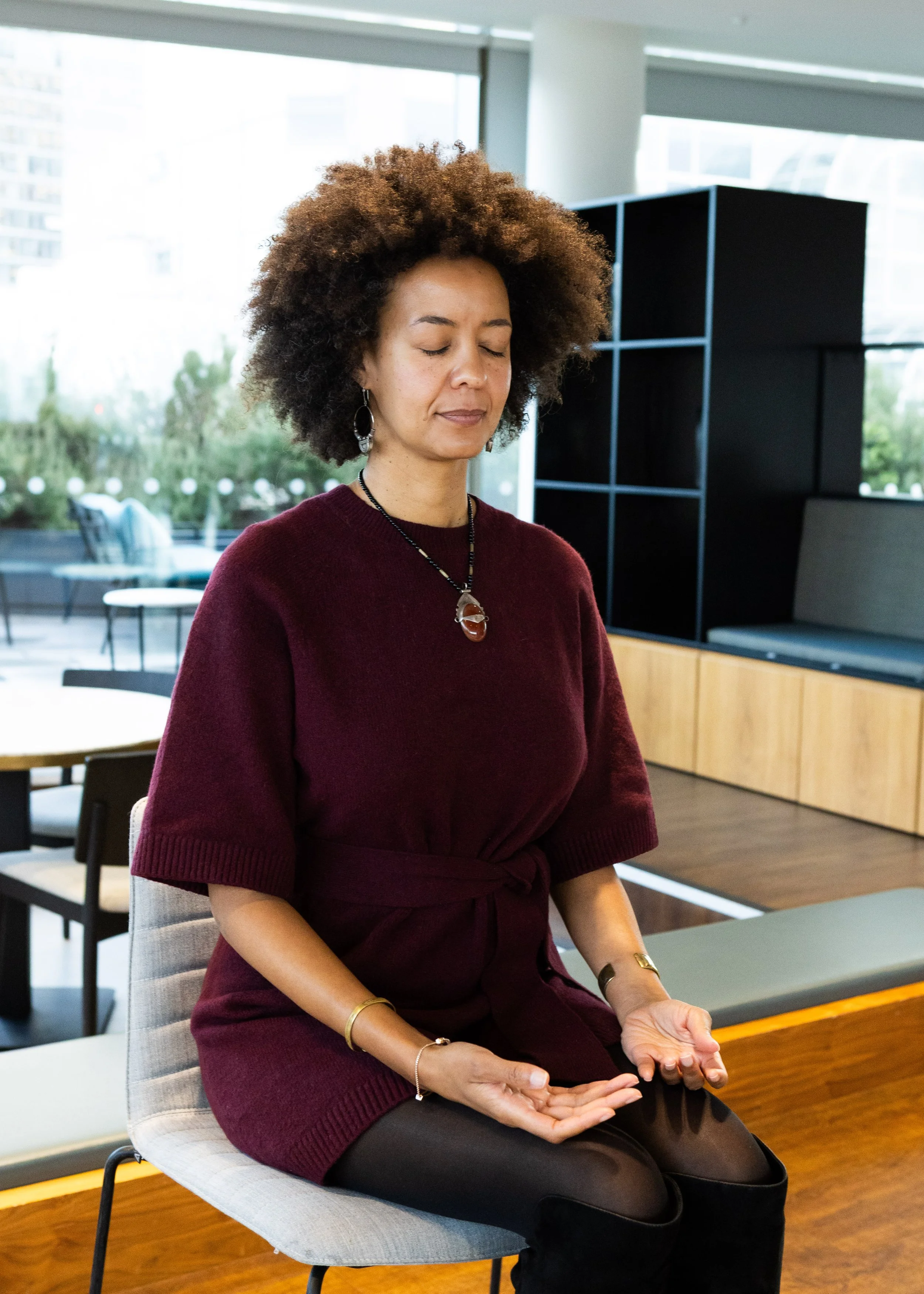 Sit comfortably. Relax your shoulders. Close your eyes or lower your gaze.Picture the version of yourself that you deeply admire, standing in front of you. Notice their posture, energy, expression.